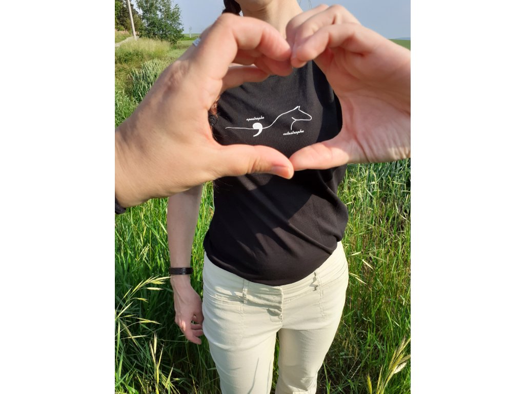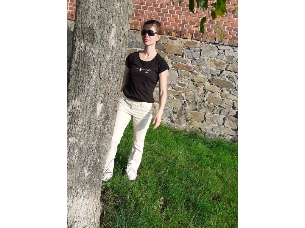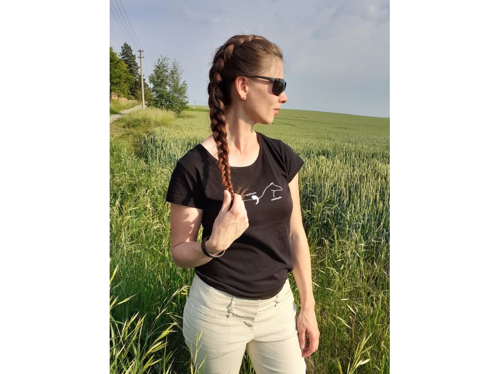 Padnoucí střih zvýrazní postavu, bavlněný materiál je příjemný na dotek a potisk zaujme každého, kdo se kolem koní kdy jen mihnul.